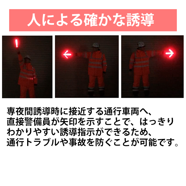 手に持って誘導、車両に取り付けて注意喚起。